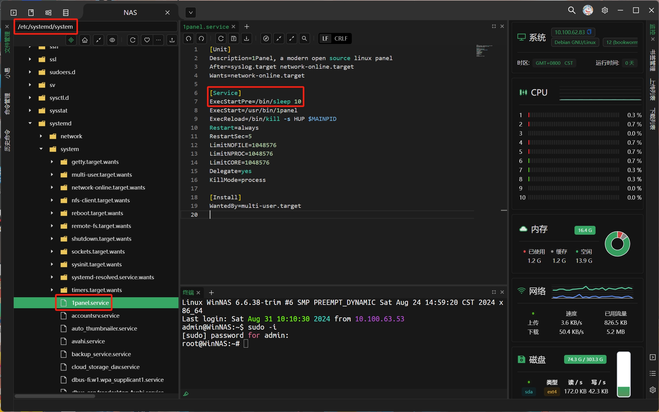 使用命令修改路径文件/etc/systemd/system/1panel.service